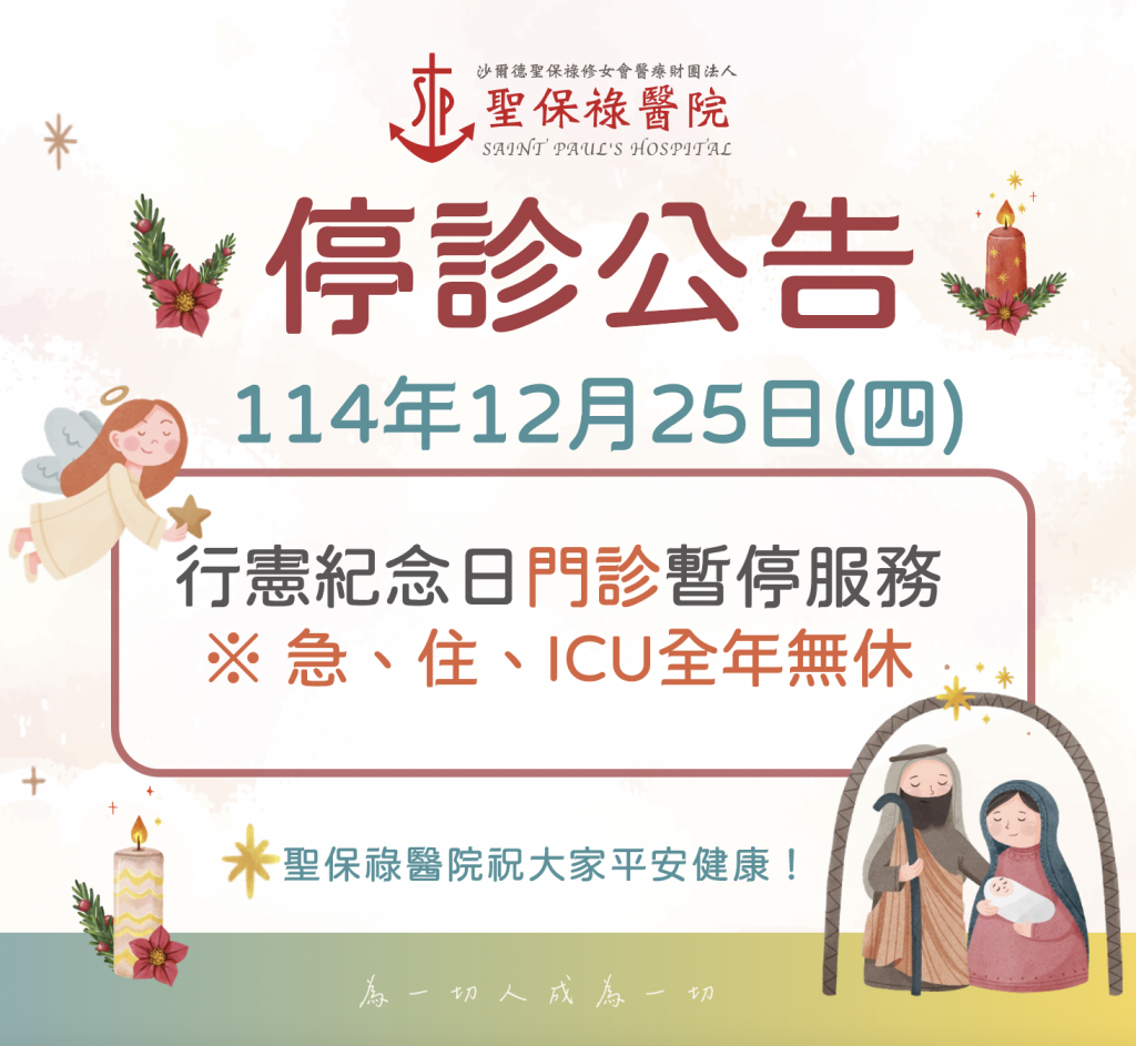 停診公告-114年12月25日(四)行憲紀念日門診暫停服務
