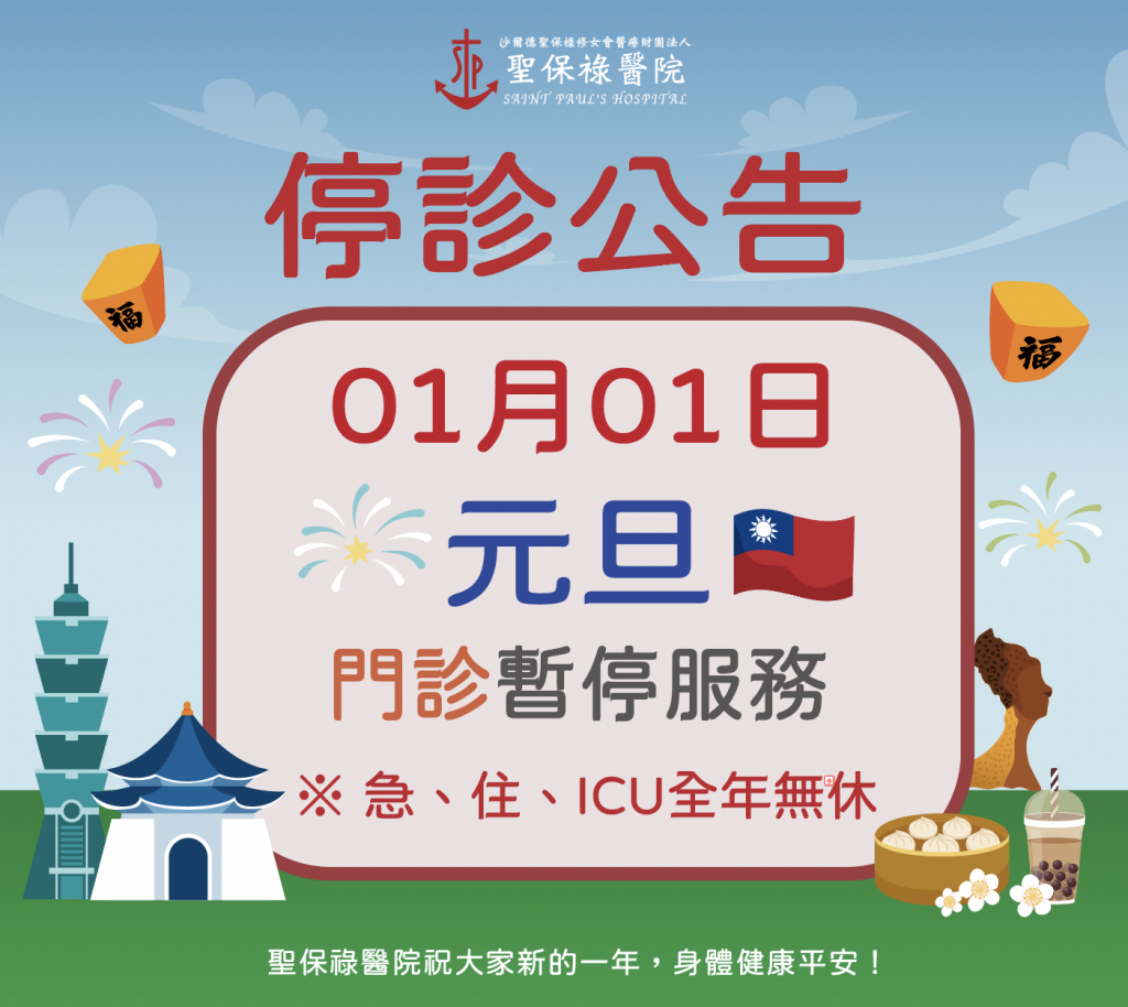 停診公告-115年1月1日(四)元旦 門診暫停服務